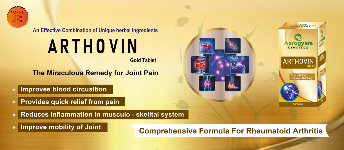 “AROTHOVIN TABLET” is a wonderful formulation that significantly promotes blood circulation, improves mobility of joint, provides relief from joint pain and reduces inflammation in musculoskeletal system. It is made from 100% natural herbs without any artificial preservatives and noxious chemicals.
